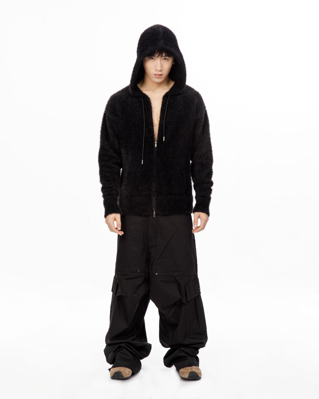 THE FAUX MOHAIR ZIPPED CARDIGAN
